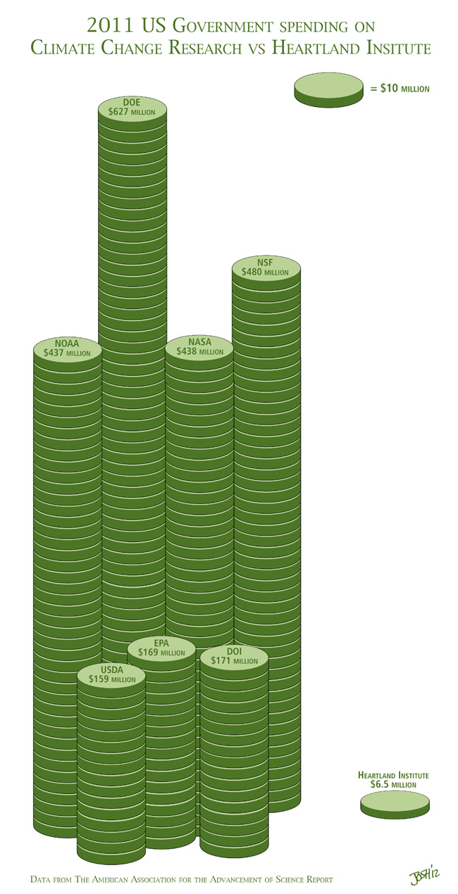 It was the unfairness of it all, as you can clearly see from the graphic above. Clearly The Heartland Institute was being allowed to control the debate, by channeling a preponderance of funding to sceptic groups and scientists.
